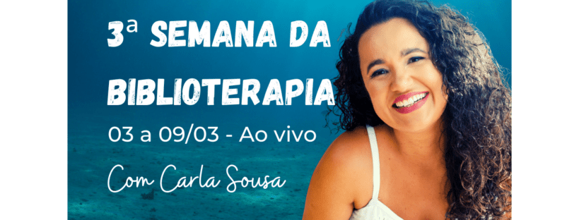 Eu quero convidar você para fazer um mergulho junto comigo de 03 a 09 de março na 3ª Semana da Biblioterapia! Durante esses sete dias vamos mergulhar no potencial terapêutico da literatura! Os encontros ocorrerão sempre às 19h no meu Canal do Youtube e a gravação não vai ficar disponível. Eu vou adorar ter você … Continue lendo 3ª Semana da Biblioterapia